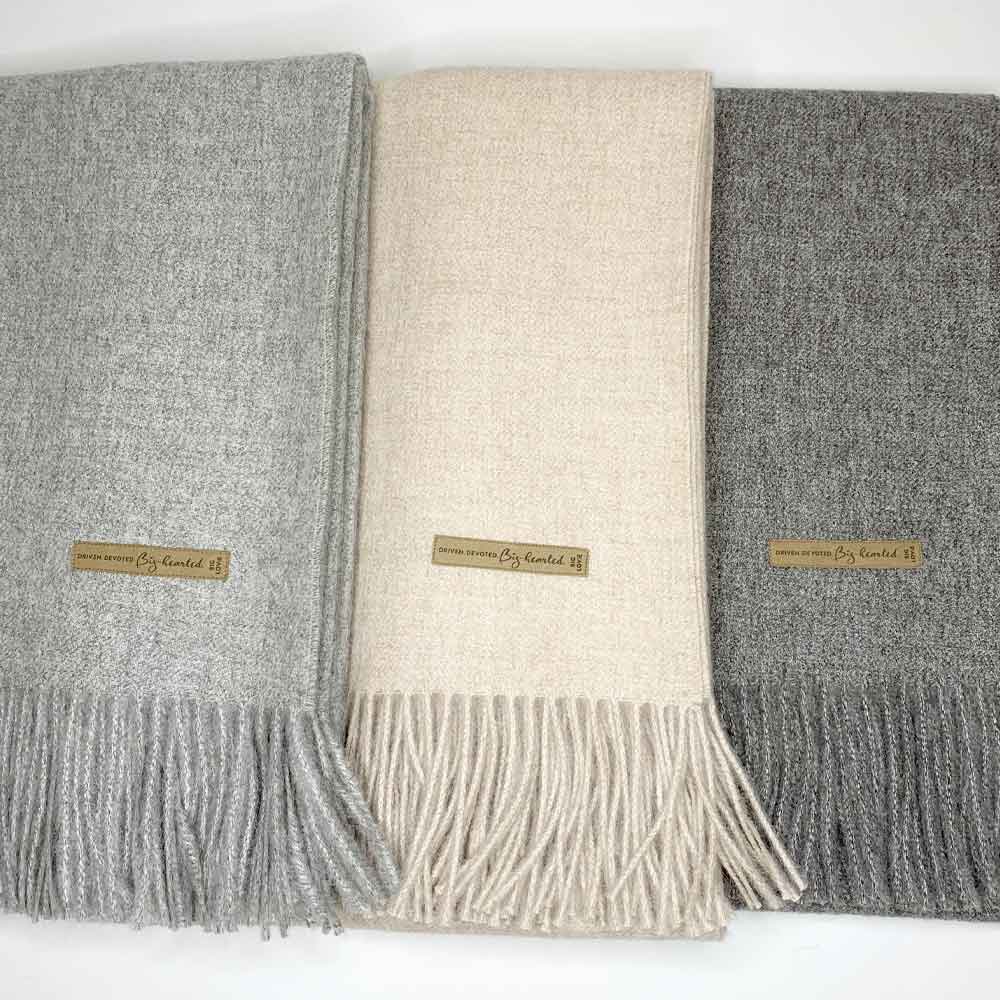 Size: 70" x 51" + 4" fringe (680g midweight)
